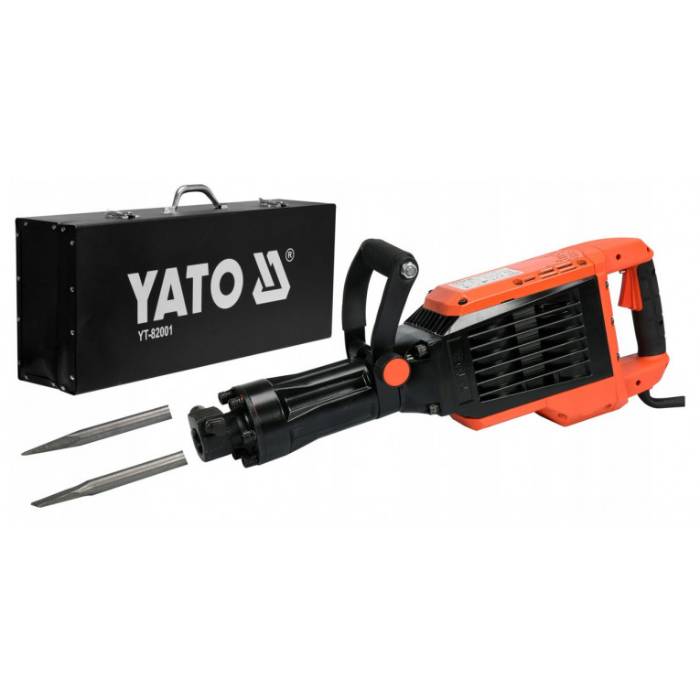 פטיש חציבה יאטו 1600W דגם YT-82001 מנוע חזק המספק עוצמת הלימה 65J בעל ידית נגד רטט, מתאים לעבודה רציפה, מגיע במזוודה ממתכת מוצקה כולל 2 איזמלים.